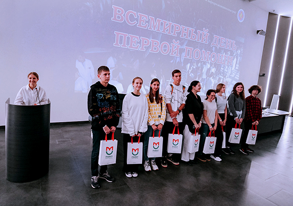 А также Марина Владимировна Костюченко, д.м.н., доцент, профессор кафедры медицины катастроф ЛФ наградила организаторов станций — своих кружковцев.