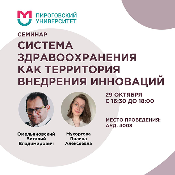 29 октября в 16:30 в аудитории 4008 состоится семинар ФГБУ «Центр экспертизы и контроля качества медицинской помощи» Минздрава России о роли высокотехнологичных решений для медицины и медицинского сообщества